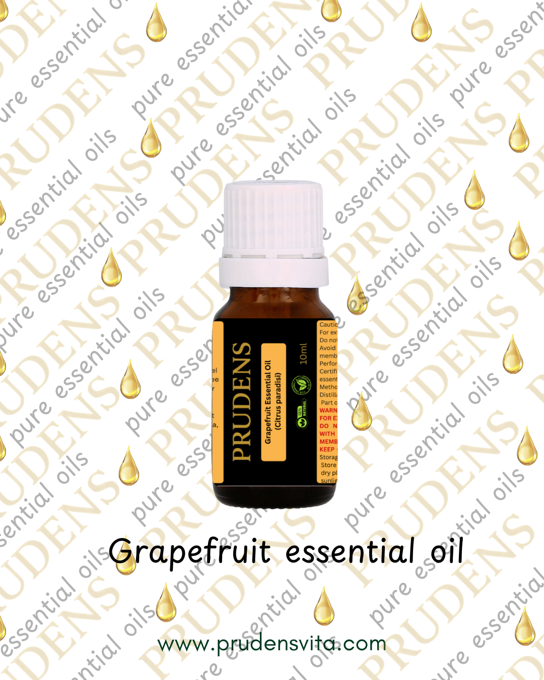 Prudens Grapefruit Essential Oil has a refreshing, uplifting aroma that invigorates the senses and supports a positive mood. Known for its detoxifying properties, it is excellent for energizing blends, skincare, or use in diffusers for a natural, citrus-inspired boost.