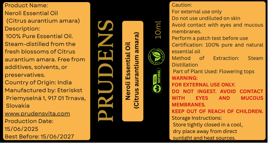 PRUDENS Neroli Essential Oil (Citrus aurantium amara) – 10ml